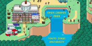 Spostiamoci in Giappone, dove andiamo a parlare di una web page universitaria, proprio come potrebbe essere quella del politecnico di Torino… Ecco, digitando il suo indirizzo e dopo aver caricato per qualche secondo, ci troviamo di fronte a qualcosa di decisamente inatteso, niente loghi altezzosi, niente elenchi delle specializzazioni di facoltà impilati uno dietro l’altro ed incastonati in scarni fondali, magari con l’immagine del palazzo universitario piazzato come banner. Ci troviamo in un mondo ad 8 bit totalmente animato, in pieno stile “gioco di ruolo” Nintendo, dove ogni tua scelta sarà guidata da un sottofondo musicale (esclusivamente 8-bit) e gidierresco 😀