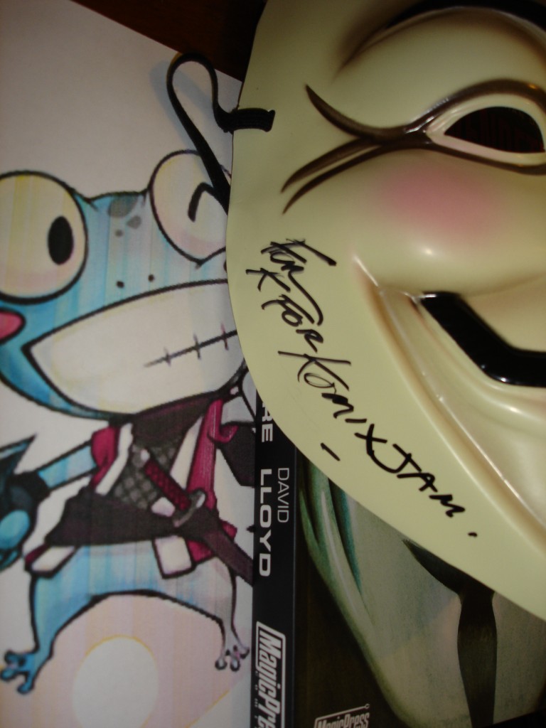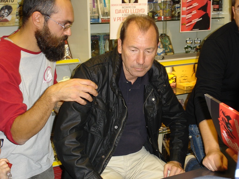 Per prima cosa ci tengo a ringraziare la Biblioteca delle Nuvole e David Grohmann, la prima è un’associazione culturale di Perugia e il secondo è uno dei suoi membri che si è gentilmente prestato a farci da interprete con David Lloyd; oltre a loro ovviamente rinnovo i ringraziamenti alla Star Shop di Perugia e alla Nicola Pesce Editore.