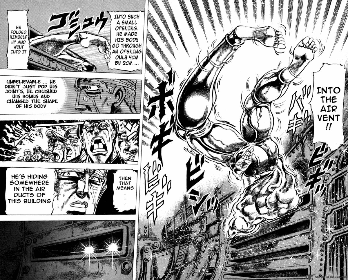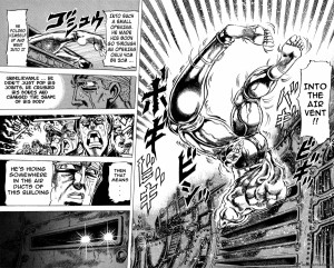 Personalmente ritengo che Le bizzarre avventure di Jojo esca da una sorta di “fase introduttiva” alla comparsa del primo Uomo del Pilastro, affrontato in Messico. Dopo una piccola scaramuccia con una vecchia conoscenza, bullata e umiliata da quello scimmione di Joseph, la scena si sposta in America Centrale dove scavi archeologici hanno rivelato una tremenda statua circondata da Maschere: il problema è che essa sembra essere viva, poichè in grado di assorbire il sangue dai cadaveri anche a distanza. La statua verrà successivamente spostata dall’esercito nazista, e la creatura in essa imprigionata, Santana, libera di agire come una volta. Questo momento è per me uno degli spartiacque fondamentali di Jojo, in cui Araki comincia ad inserire creature fantastiche frutto di una bizzarra fantasia, ispirato da chissà che cosa: fin’ora si combatteva qualcosa che in qualche modo faceva parte del reame umano (i vampiri sono una delle creature mitologiche la cui conoscenza è tra le più diffuse al mondo), o del conoscibile, da questo momento in poi il Joestar di turno, come il lettore, dovrà scontrarsi contro l’ignoto con un urlato, patetico “e ora che si fa?!“