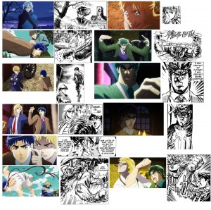 Ho deciso di essere cattivo, acido e pungente come in altri frangenti sono stato nei mesi precedenti: troppo spesso sento dire che “non riesco a leggerlo perchè il disegno è brutto”. Affermazione che non condivido, non giustifico e soprattutto non farò nessuno sforzo per comprendere poichè come si dice, un libro non si giudica dalla copertina. È disegnato male, e allora? Phantom Blood ha un carisma tale che gli autori oggi devono sudare sette camicie per darne uno pari alle loro opere, poichè non siamo più negli anni ’80 dove tutto era diverso, e per certi versi più semplice. Indubbiamente però, ad un adolescente di oggi, abituato a un certo tipo di prodotto, la lettura di Jojo può risultare poco interessante: ebbene dal 2012 nessuno ha più scuse perchè è stato realizzato un adattamento animato al dir poco spettacolare. Non sto cercando di cambiare queste persone, spero soltanto che Rat-Man vada a fuoco tra le loro mani. (A buon intenditore poche parole ndRegola.)