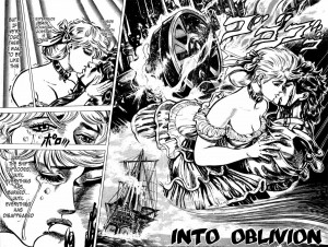 Probabilmente Araki non aveva idea di cosa stava creando nel 1987, credo si concentrasse sul lavoro per dare il meglio di se, eppure dopo oltre venti anni i personaggi della prima parte si ergono in alto, eroici, divini, mitizzati, rispetto a tutti quelli comparsi successivamente: Jonathan e Dio sono coloro che hanno dato inizio a tutto. È impossibile dividere questi due personaggi, amici e nemici nello stesso momento, cresciuti come fratelli e destinati ad affrontarsi per stabilire le sorti del mondo: per certi versi scelti come rappresentanti della luce e dell’oscurità, del bene e del male, fin dal loro primo incontro inizia a tessersi intorno a loro una trama di sangue e tragedia. Ironicamente entrambi sono condannati a permettere la crescita dell’altro: se non fosse stato per Dio, Jonathan sarebbe stato un debole nobilotto e senza questi Dio non avrebbe mai scoperto il segreto della Maschera di Pietra e raggiunto l’immortalità. Fino alla fine, confrontarsi permette ad entrambi di superare i loro limiti, sfondarli e compiere l’impossibile, fino alla fine, su quella nave dove Jonathan emana la sua ultima onda e anche Dio resta in silenzio, contemplando il volto esanime di suo fratello. Ci sarà tempo per parlare dei poteri e delle tecniche che acquisiscono nel corso della storia, per ora voglio soffermarmi sul loro spirito.