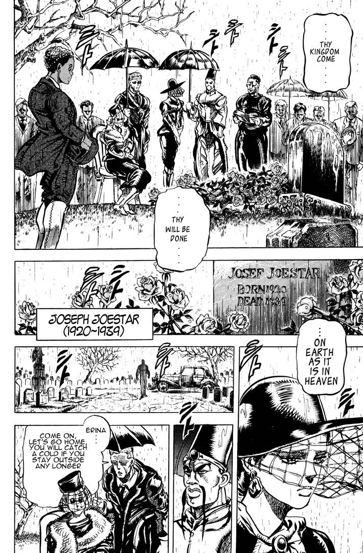 Joseph sarà uno dei personaggi a comparire di più in tutta la saga: come penso molti di voi sapranno già, avrà un ruolo fondamentale nella terza serie e farà qualche meravigliosa comparsa nella quarta, una figura in qualche modo sempre presente che seminerà figli illegittimi per tutto il globo. Sempre al centro della trama come Dio che ha il suo stesso numero di apparizioni (anche se…),e Jotaro, che invece è il personaggio apparso più volte (terza, quarta, breve apparizione nella quinta, e sesta).