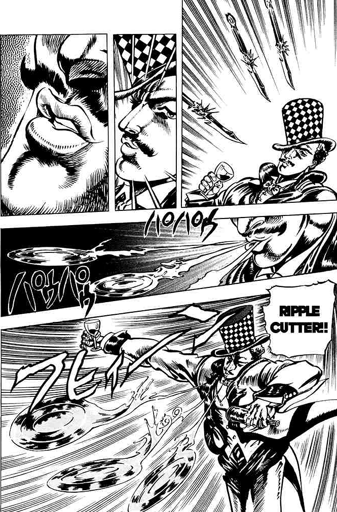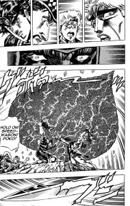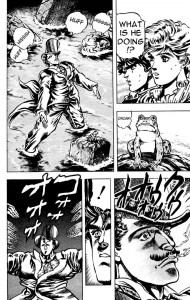 Jojo è uno dei manga con la più elevata densità di “cose” che possono uccidere per vignetta… credo di avere già usato un’espressione del genere precedentemente, e la ripeto perchè penso che essa sia vera. Questo soprattutto nelle prime due serie dove i protagonisti, perlopiù normali esseri umani, si ritrovano a combattere esseri che umani proprio non sono; vero che neppure nelle serie successive alcune delle avversità non saranno causate da cose provenienti da angoli bui del regno animale e vegetale, ma i personaggi avranno sempre al loro fianco il proprio Stand per affrontarli. Nelle prime due serie questi non ci sono, e i protagonisti devono fare appello a un altro tipo di potere: le Onde Concentriche dell’Arte Eremitica, che non mi riesce di definirla diversamente da l’arte di compiere miracoli.