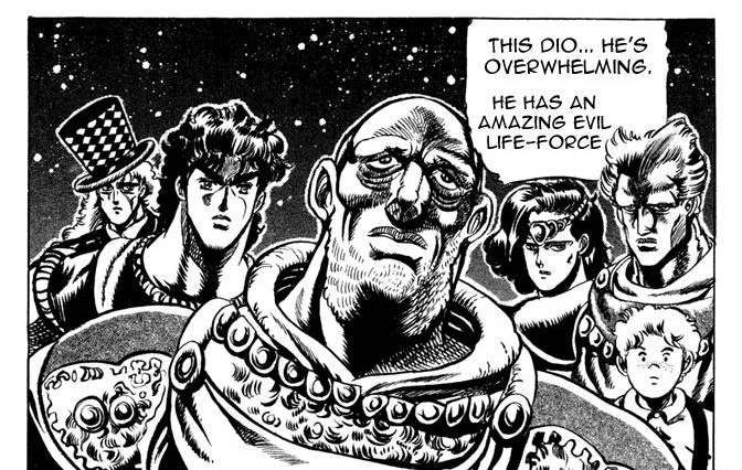 Cosa sarebbe stato di Jonathan Joestar senza tutti questi personaggi che lo hanno accompagnato nella sua missione? Probabilmente niente, sarebbe stato un debole completamente in balia delle angherie di Dio. Il segreto dei muscoli d’acciaio di Jonathan non dipende dalla sua padronanza dell’Arte dell’Eremita, ma proprio dai legami che stringe nel corso della sua vita! La forza dei suoi Overdrive è la somma dei sentimenti di amore, odio, e del desiderio di redimere il suo onore e vendicare i suoi cari caduti. Credo che i parallelismi con Hokuto no Ken siano dovuti, Araki stesso affermò di essere stato ampiamente influenzato dal lavoro di Buronson/Hara prima di formare un suo stile personale (che inizia a prendere visibilmente forma dalla quarta serie) che comunque non farà mai a meno dei commoventi e nobili sacrifici. Zeppeli è soltanto il primo di una lunga fila di personaggi che incontreranno la morte non prima di lasciare per sempre un eroico contributo: questa costante è per certi versi una delle più affascinanti del fumetto di Araki e sicuramente una di quelle che più di tutte mi hanno coinvolto.