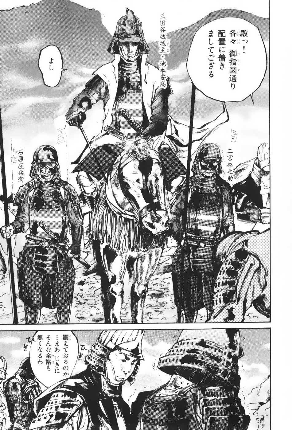 La storia entra da questo punto nel vivo ma allo stesso tempo anche noi entriamo nel vivo dell’epoca Sengoku: in particolar modo il primo volume si rivela essere un vero e proprio piccolo compendio di storia di quel periodo. L’autore ci presenta infatti varie figure, istituzionali e non, che popolano la corte: dal signore feudale, passando per il karo, i vassalli, i messaggeri fino alla rojo (la superiore delle dame da compagnia), mostrandone gli atteggiamenti e i ruoli che occupano in quella società. La caratterizzazione delle diverse figure sociali si riflette inoltre nel modo di parlare, abbastanza gretto e volgare per i contadini e più ricercato invece per i nobili, anche con il frequente ricorso a tradizionali modi di dire.