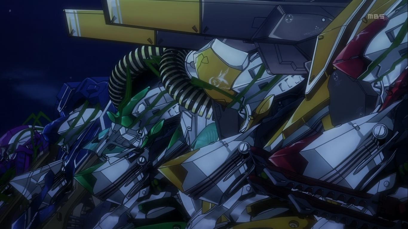 Maledizione. La serie, come alcuni sapranno, l’ha scritta Ichirou Okouchi, uno che di noto ha fatto Code Geass, anime nella mia Top10 dei titoli più sopravvalutati del primo decennio di questo millennio (ho detto sopravvalutato, non brutto) e la trilogia di film ispirati a Berserk, quelli che hanno puntato soprattutto su una riproduzione fedele dell’Eclissi. Ha dato la sua collaborazione anche per Guilty Crown e Eureka Seven. Ecco, ritengo Okouchi uno sceneggiatore ampiamente sopravvalutato e Valvrave rappresenta, per quanto mi riguarda, uno dei più grossi errori fatti dallo studio Sunrise, perchè se posso accettare il mecha design, le musiche, le animazioni che sono impeccabili in certi punti.. ecco, quello che proprio non va bene è come i contenuti sono stati presi e buttati, come verdure a un criminale alla gogna, sullo storyboard.