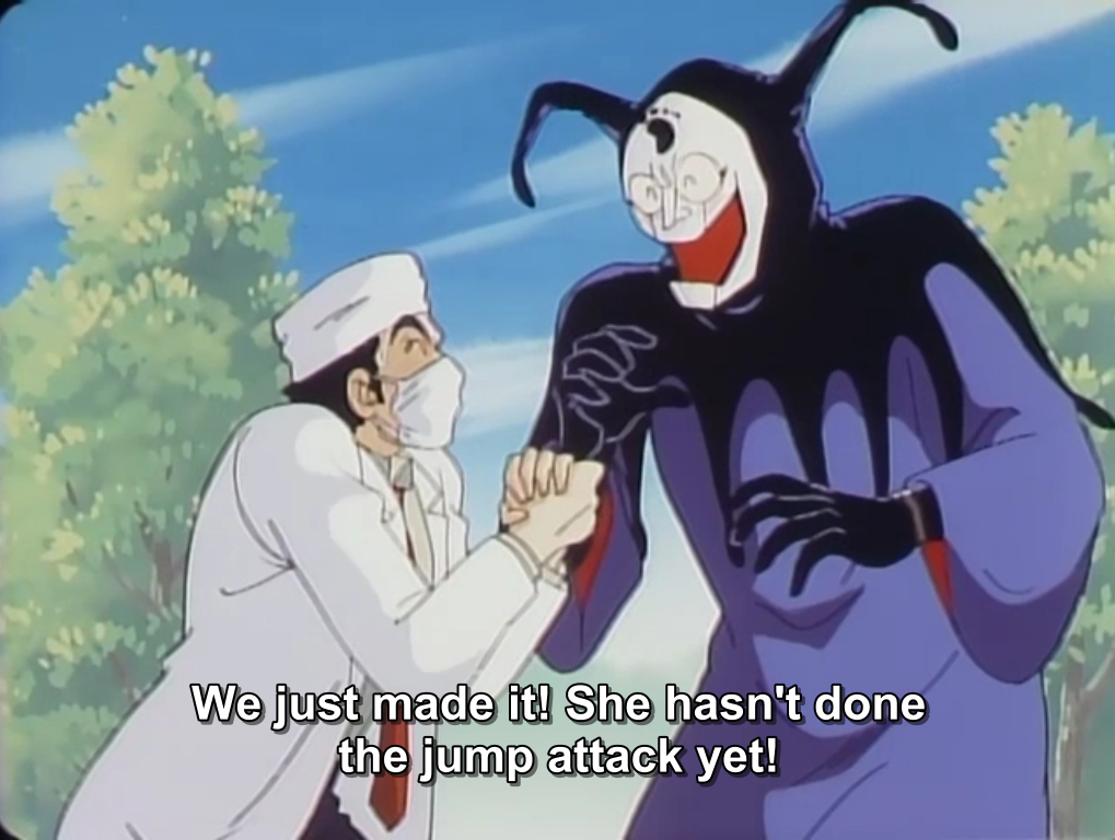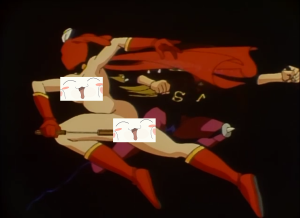 Il secondo punto che mi preme sottilineare è che Kekko Kamen (a piccole dosi) è indubbiamente divertente, perchè racchiude perfettamente in se lo stile del suo autore, noto per essere da sempre uno dei più trascinanti nel mondo del fumetto nipponico: Go Nagai non si perde mai troppo in lunghe e inutili premesse, è sempre diretto, semplice e lineare, in qualche modo anche rassicurante nella sua prevedibilità, nel modo in cui è possibile calcolare con cronometro e calcolatrice l’esatto punto in cui il climax raggiungerà il suo apice. E non manca di stupire e far ridere, con delle battute figlie di un metapensiero che non guasta mai (Kekko Kamen che compare senza musica di sottofondo, interrogata sul motivo di ciò risponde, “la tengo in serbo solo per quando c’è un pubblico numeroso“) e tante piccole gag oramai vecchie di quarant’anni, fatte di gonne, mutandine svolazzanti e tentacoli prensili. E in qualche modo questo buffo anime che non si vergogna in alcun modo di mostrare una protagonista senza velo alcuno riesce a prendere in giro se stesso, ironizzando, e riuscendo nell’arduo compito di non essere mai volgare. “Perchè parlarne ne Gli Inguardabili?”, vi starete chiedendo, allora… beh, perchè se Kekko Kamen e Go Nagai sanno ironizzare e prendersi in giro, non è detto che tutti siano in grado di farlo, e sono sicuro che la fuori molti considerano questo prodotto volgare, di pessimo gusto, un insulto a tutte le donne del mondo. Ah già, dimentico sempre che è giusto che le figure maschili siano tutte patetiche e ridicole.