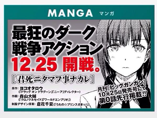 Martedì di questa settimana, l’account ufficiale di Twitter della rivista Big Gangan di proprietà della casa editrice Square Enix ha annunciato che Daisuke Moriyama e Tarō Yokō collaboreranno per realizzare un nuovo manga intitolato Kimi Shi ni Tamafu Koto Nakare (You Must Not Give Yourself to Death – Non devi consegnare te stesso alla morte). Il primo capitolo di Kimi Shi ni Tamafu Koto Nakare sarà pubblicato sul numero di Gennaio del prossimo anno della rivista che sarà messo in vendita il 25 Dicembre.