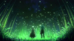 Decisa a capire chi diavolo sia questo vecchietto bisbetico che non le permette di esercitarsi nella lettura, Kobato chiede a Kiyokazu (che scopre essere il proprio vicino di casa ^^) notizie su di lui e scopre che quel “vecchietto” è in realtà Soutarou Mori… nientemeno che l’autore della storia della lucciola narrata nel libro! Convinta che non voglia farla leggere a voce alta perché qualcosa nel libro lo turbi, Kobato porta avanti le sue indagini sul vecchietto senza tuttavia venire a capo di un bel nulla: invitandolo nella radura nelle vicinanze quella stessa sera per discutere serenamente fra di loro, Kobato si allontana sperando di avere l’incontro che tanto desiderava ma al calar del solo nessuno si è presentato all’appuntamento. Quando ormai sia lei che Ioryogi hanno perso le speranze, il nostro vecchietto compare in scena con una torcia e chiede alla ragazza perché l’abbia invitato lì con lei: felice nel vederlo arrivare, Kobato gli chiede cosa ci sia nella storia che tanto lo turba e Mori racconta che i disegni del libro sono stata realizzati dalla sua fidanzata dell’epoca, con la quale non ebbe mai modo di andare ad ammirare lo spettacolo delle lucciole notturne poiché il lavoro lo opprimeva e proprio quando trovò un pomeriggio libero, la ragazza ebbe un incidete d’auto e perse la vita. Mai in grado di perdonarsi la triste realtà dei fatti, Mori iniziò ad odiare quel libro e quella storia ma Kobato cerca di sollevargli il morale finendo per scivolare a sua volta in una zona più bassa della collina dove Mori la raggiunge per aiutarla e dove scopre essere praticamente di fronte alla copertina del libro… nel posto dove la sua ragazza disegnò gli scenari per il racconto. Alla luce dello spettacolo di lucciole pronte a volteggiare per il cielo stellato, Kobato e Mori osservano senza parole lo spettacolo della Natura e della vita.