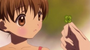Kobato ed i ragazzi decidono di trascorrere il resto del pomeriggio giocando a nascondino e la povera piccola protagonista è colei che dovrà andare in giro a cercare i piccoli amici: la sua bonarietà e spensieratezza, unita al fatto che questa è la prima esperienza con questo gioco fanno si che i risultati siano abbastanza scarsi ed i bambini rimangano nascosti nonostante siano poco lontani da lei: Fujimoto-kun si rende conto che l’ora è ormai abbastanza tarda ed è tempo di rientrare e chiama tutti a radunarsi nello spiazzo del pic-nic facendo si che Kobato possa trovare tutti i bambini, vincendo il gioco ^^ Ormai al tramonto e pronti per tornare all’asilo, la comitiva vorrebbe mettersi in marcia ma Sayako si rende tragicamente conto che Marina-chan manca all’appello e nessuno abbia idea di dove sia! Mentre Kiyokazu e Kobato la cercano disperatamente nelle vicinanze, Ioryogi rientra sulla Terra dopo aver avuto un incontro-scontro con Ginsei, altra amicizia dei tempi da agente segreto (o qualunque cosa fosse ^^) con la quale però sembra esserci decisamente meno feeling rispetto a Genko: rientrando a casa, la sua attenzione viene attirata da un pappagallo parlante (l’ultima conoscenza di oggi) che gli porta le informazione richieste all’amico informatore e che gli chiariscono in parte la situazione poiché scopre che l’asilo è appartenuto da sempre al padre di Sayaka ora deceduto che venne truffato per motivi non ben chiariti e che per risollevarsi dalla crisi dovette chiedere un prestito, il cui obbligo di pagamento grava ora sulle spalle della figlia! Dopo aver girato in lungo ed in largo il parco ed aver trovato la piccola Marina addormentata in un campo di quadrifogli che voleva portare a Kobato per risollevarle il morale, la comitiva scatta una foto ricordo da conservare e portare a casa ignari dell’ombra oscura che grava sull’asilo. La sera Kobato trova il suo cagnolino di pelouche nuovamente a casa ma non le racconta nulla di quanto appreso in giornata grazie alle proprie fonti, millantando di aver trascorso le ore pomeridiane oziando in casa: Kobato nemmeno immagina la gravità della situazione…