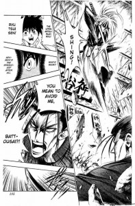 Un segno distintivo di Kenshin è: essere un fumetto in cui non è necessario la presenza di “blast” vari per rendere “fico” un personaggio. Mi spiego: al contrario di molti fumetti più famosi qui non si fa utilizzo di tecniche di combattimento che sfruttano sfere/raggi/etc. di energia.