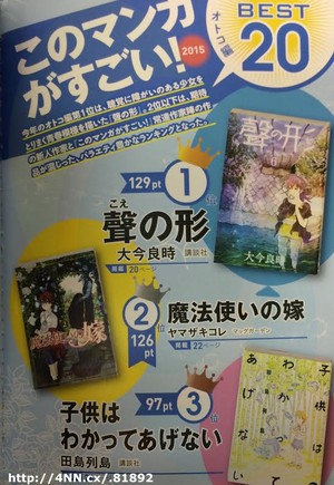 Martedì di questa settimana l’edizione del 2015 della guida Kono Manga ga Sugoi! (Questo manga è stupendo!) edita dalla Takarajimasha ha diffuso i titoli delle migliori serie di quest’anno.