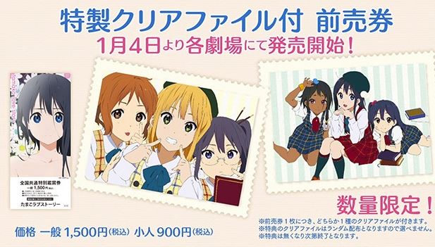 La prevendita di biglietti per il lungometraggio di Tamako Love Story comincerà il 4 Gennaio e a chi acquisterà I biglietti con tanto anticipo saranno anche regalati alcuni gadget del film.