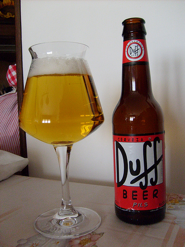 In effetti ci sono già stati degli episodi passati d’imitazione ma sono tutti falliti: la prima venne prodotta verso la fine degli anni novanta dal mastro birraio australiano Lion Nathan, che iniziò a produrre una birra chiamata appunto “Duff Beer“. La 20th Century Fox, in risposta, denunciò tale birrificio per violazione di copyright e vinse la causa. Attualmente, invece, un commerciante messicano ha brevettato il nome birra Duff nel sud America, Europa e Asia (i diritti della Fox possono essere esercitati solo in USA e Australia) e produce e commercializza la birra, una bionda leggera a gradazione alcolica di 5 gradi; la forma della bottiglia e il logo dell’etichetta sono identici a quelle delle Duff viste nella serie animata. Tuttavia quella che berremo noi sarà molto più veritiera delle altre imitazioni perché quella venduta in Italia è una Pilsner di tipo americano.