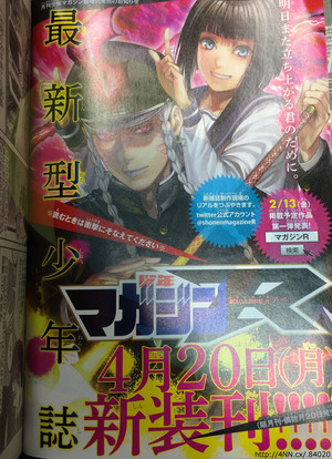 Venerdì di questa settimana il numero di marzo della rivista Monthly Shonen Magazine edita dalla Kodansha ha annunciato il lancio di una nuova testata. La rivista si chiamerà Shōnen Magazine R e avrà periodicità bimestrale. Il primo numero uscirà il 20 Aprile di quest’anno. Successivamente la Kodansha farà uscire i successivi numeri il 20 dei mesi pari (Aprile, Giugno, Agosto, Ottobre, Dicembre e Febbraio).