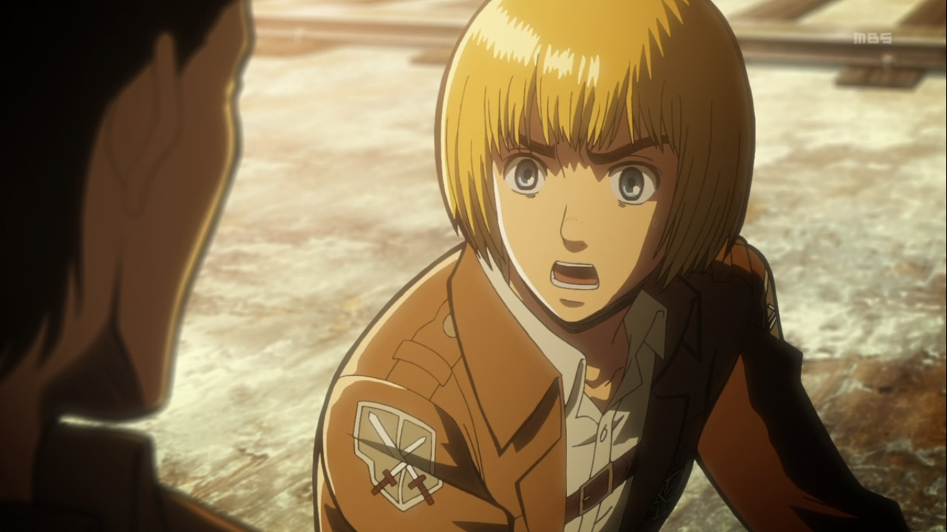 Riassunto: In quest’episodio ritroviamo Pixis che cerca un modo per poter richiudere le mura sfondate dai giganti e decide di seguire la strategia suggerita da Armin, utilizzare Eren per poter spostare un enorme masso e richiudere quindi la voragine aperta nelle mura. Per poter eseguire il proprio piano, Pixis, riesce a trattenere i soldati che stavano iniziando a disertare per la paura di tornare in battaglia e manda Eren, con un piccolo gruppo d’élite, verso la gigantesca roccia, mentre i restanti soldati cercheranno di fare da esca nell’angolo delle mura opposto.