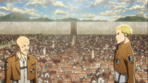 Commento: Quest’episodio devo dire che è parecchio interessante, innanzitutto ci vengono presentati dei nuovi personaggi appartenenti all’ esercito, inoltre ci presentano quelle che potrebbero essere delle fazioni emergenti che stanno iniziando a dividersi il potere dentro le mura e cioè la fazione dei mercanti e la religione delle mura. Devo ammettere che personalmente non trovo molto sensata la posizione di chi vorrebbe uccidere Eren, posso capire che faccia paura sapere che un essere umano si può trasformare in gigante, ma Eren risulta essere davvero l’unico passo avanti nella lotta contro i giganti da secoli e troverei abbastanza stupido privarsi di una risorsa così importante solo perché si ha paura di non riuscire a controllarla a dovere. Con l’arrivo della seconda parte della serie c’è stato un cambio sia per l’opening che per l’ending, devo dire che la nuova opening non mi piace troppo e la trovo anche fin troppo spoiler, il che rischia davvero di togliere un po’ del mistero presente nell’opera, mentre la nuova ending devo dire che mi ha colpito parecchio. Voi che ne pensate? credete che sia davvero sensato il processo contro Eren? E di quelli che potrebbero essere delle fazioni che in un futuro influenzeranno la vita dell’umanità dentro le mura cosa credete? Devo ammettere che mi sembra davvero strano che una religione delle mura possa in 5 anni prendere tanto potere da influenzare la popolazione.