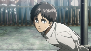 Riassunto: In quest’episodio vediamo Eren che, dopo esser stato imprigionato per un periodo imprecisato, viene portato davanti ad una corte per decidere cosa ne sarà della sua vita e che possibile futuro gli si prospetta. Il processo non sembra mettersi molto bene per il nostro protagonista, ma il piano prospettato dalla Legione Esplorativa alla fine, grazie alla perdita di pazienza di Eren, riesce ,e lui viene quindi arruolato nella legione con lo scopo di uscire dalle mura e riprendere Wall Maria.