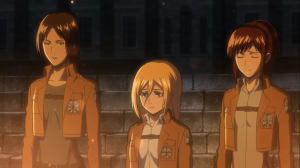 Riassunto: In quest’episodio vediamo una perquisizione verso i cadetti per vedere se qualcuno di loro ha utilizzato senza permesso il proprio modulo di spostamento tridimensionale con lo scopo di individuare chi potesse aver attaccato i due giganti catturati dalla legione esplorativa. In seguito, ci viene raccontata la difficile scelta che ogni soldato, dopo i tre anni di addestramento in accademia ,deve e fare, e cioè capire in quale delle varie Legioni vuole prestare servizio. I cadetti che si sono uniti alla legione esplorativa dopo solo un mese di addestramento sono già impiegati ufficialmente poiché per dimostrare l’importanza di Eren contro i giganti si deve partire velocemente per la cinquantasettesima spedizione dell’umanità oltre le mura.