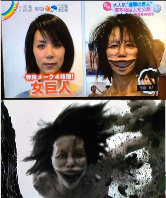 Shinji Higuchi, il regista 48enne dell’adattamento dal vivo di L’attacco dei Giganti e di The Floating Castle (Nobō no Shiro) ha lavorato alla pubblicità. Lo spot mostra tre giganti tra i quali un gigante femmina interpretato da un’attrice e modificato con la computer grafica. Sono state necessarie quattro ore per applicare all’attrice il trucco da gigante. In aggiunta, lo spot mostra anche il modello della parte superiore del corpo di un titano colossale. Il modello era alto circa due metri e per animarlo sono state necessarie sette persone.