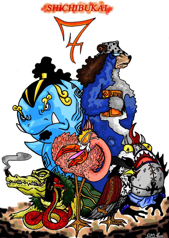 Prima di iniziare analizzando personaggio per personaggio, è bene ricordare che i sette membri originari della Flotta erano tutti associati ad un animale: chi nel nome, chi nel soprannome, tutti avevano un animale abbinato. Questa caratteristica è andata persa quando, con la defezione di qualcuno di questi membri originari, i nuovi componenti che sono andati a sostituirli non possedevano nessun collegamento evidente a qualche animale. I sette animali all’inizio erano: coccodrillo, falco, squalo balena, boa, orso, gekko e fenicottero . Ho cercato ovunque ma non ho trovato straccio di leggenda/storia/mito ecc. che accomunasse questi animali. A questo punto credo sia un’idea originale di Oda, senza alcun omaggio a qualche altra opera ma non si sa mai … Se conoscete qualche leggenda che possa spiegare questo naturalmente vi chiedo di postarla.