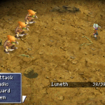 Memore dell’esperienza maturata con Final Fantasy II, Final Fantasy III reintroduce il sistema di livellamento tramite punti esperienza ed una nuova meccanica di gestione delle classi di gioco: il Job System. In maniera differente rispetto a quanto accadeva nel primo capitolo della serie, le classi di Final Fantasy III non sono più limitate ad una scelta iniziale definitiva ma sono intercambiabili e vengono progressivamente sbloccate durante il gioco, offrendo un maggior grado di personalizzazione e sperimentalismo. Infatti, se all’inizio sarà disponibile di default la sola classe di Freelancer (Onion Knight nella versione NES) per i nostri eroi, che offre ben poche possibilità, proseguendo l’avventura il numero totale di jobs aumenterà fino a 23. Facendo un breve calcolo, le 23 classi disponibili per i 4 personaggi giocanti permettono di creare quasi 300.000 (!!!) combinazioni differenti del party. Come se tutto ciò non bastasse, a corroborare un gameplay tutt’altro che stantio si aggiungono i nuovi comandi speciali eseguibili durante la battaglia, Steal, Throw e Jump, e la possibilità di evocare creature di supporto (abilità legata a determinate classi) tramite Summon. Altra gradita sorpresa consiste nella presenza dell’auto-targeting associato alle creature, che evita il fastidoso bug che rendeva un attacco nullo se eseguito su una creatura già uccisa da un altro eroe, e di una migliore interfaccia di gestione delle informazioni relative alla battaglia: non più riassunte in lunghe righe di testo ma visibili direttamente al di sopra degli sprite nemici.