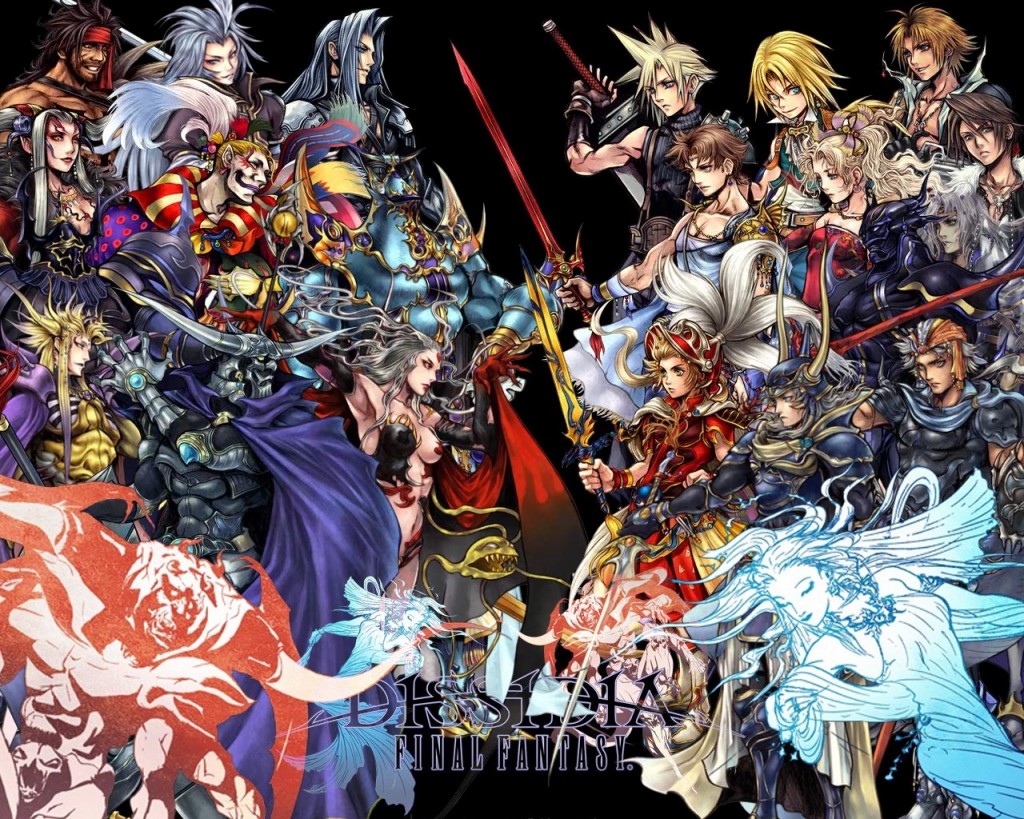 Chi ha comprato già da anni una PlayStation Portable e ha una passione per i mastodontici lavori di Square Enix, dal titolo ha già capito che stavolta ci affacciamo a quella guerriglia che ha per protagonisti praticamente tutti i principali eroi della serie regolare: Dissidia Final Fantasy, un videogame action RPG/combattimenti nata dal ventesimo anniversario della serie. Un po’ sorprendentemente, Dissidia è stato immaginato all’inizio dal solito Nomura come uno spin-off di Kingdom Hearts in cui a combattere c’erano i personaggi Disney ma, come ben immagineremmo tutti, non sembra essere un’idea davvero così appetibile e così optò per i personaggi Final Fantasy lasciando l’ispirazione iniziale per la creazione di Kingdom Hearts 358/2 Days la cui modalità multiplayer è alquanto ispirata al gameplay di Dissidia. A inizio Aprile 2007 la grande compagnia giapponese cominciò a schedare e registrare il solo termine “Dissidia” negli Stati Uniti d’America facendo partire una prima “campagna di speculazioni” e dicerie che volevano erroneamente questo titolo affiancarsi alla Fabula Nova Crystallis. L’apertura del sito giapponese un mese dopo consentì al pubblico di ricevere qualche risposta in più in merito al lavoro prodotto dall’onnipresente Kitase, diretto da Yosuke Shiokawa, Takeshi Nozue alla regia delle scene e Takeharu Ishimoto che aveva già lavorato per un paio di titoli KH e altri alla musica. Nomura invece ha fatto in modo di rendere i personaggi omogenei fra loro, rendendo persino Tidus un po’ più giovane di quello che sembra in Final Fantasy X. Nell’ultimo mese del 2008 Dissidia Final Fantasy arrivò sugli scaffali dell’est insieme alle guide Ultimania di Studio BentStuff, le bevande “Dissidia Final Fantasy Potions” di Suntory e i calendari regalati agli acquirenti. Solo ad Agosto 2009 il titolo arrivò anche in America con migliorie su ogni fronte e edizioni speciali di PSP e vari bundle.