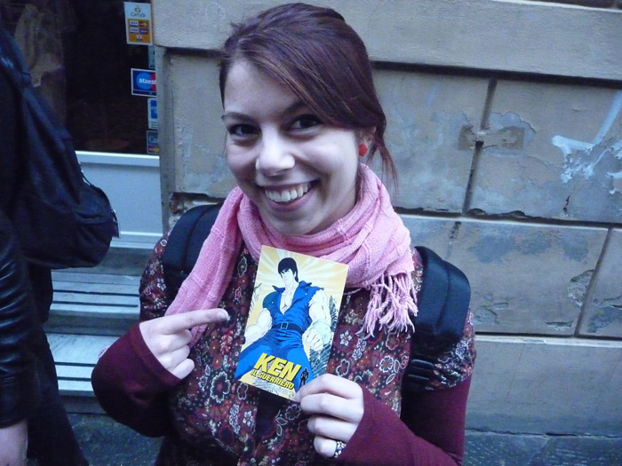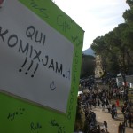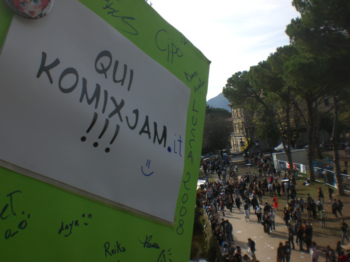 Per prima cosa, armati del cartello “Qui Komixjam”, ci siamo recati al punto di incontro vicino al palco dove abbiamo conosciuto Echoes, Wise Yuri e molti altri. Echoes si è gentilmente unito a noi ed insieme abbiamo girovagato per il Lucca Comics.