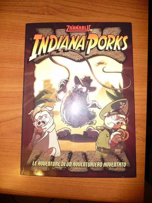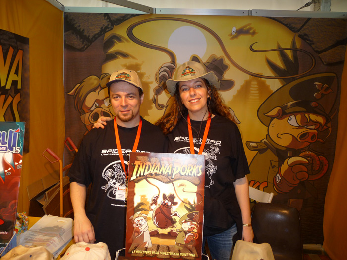 Il lavoro è subito iniziato: abbiamo incontrato i due autori di Indiana Porks: ZannaBlu. Li abbiamo conosciuti e ringraziati anche per il commento personale al nostro articolo di qualche tempo fa. Abbiamo quindi portato a casa una loro foto ed un personale autografo.