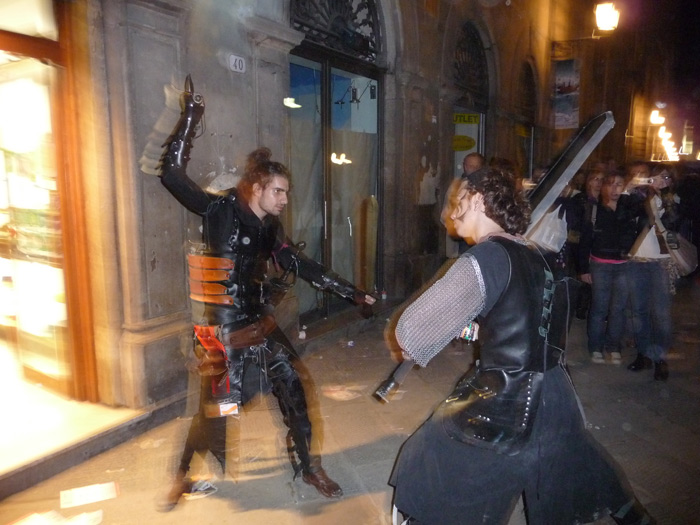 A questo punto eravamo in cinque, Fet e Tania ci raggiungevano alla sera mentre Cipo ci raggiungeva il giorno successivo. Siamo partiti per il Lucca Comics decidendo di non fare il biglietto: erano oramai le 16. Siamo andati a spasso per Lucca… un giro per prendere confidenza tra noi e con la città…