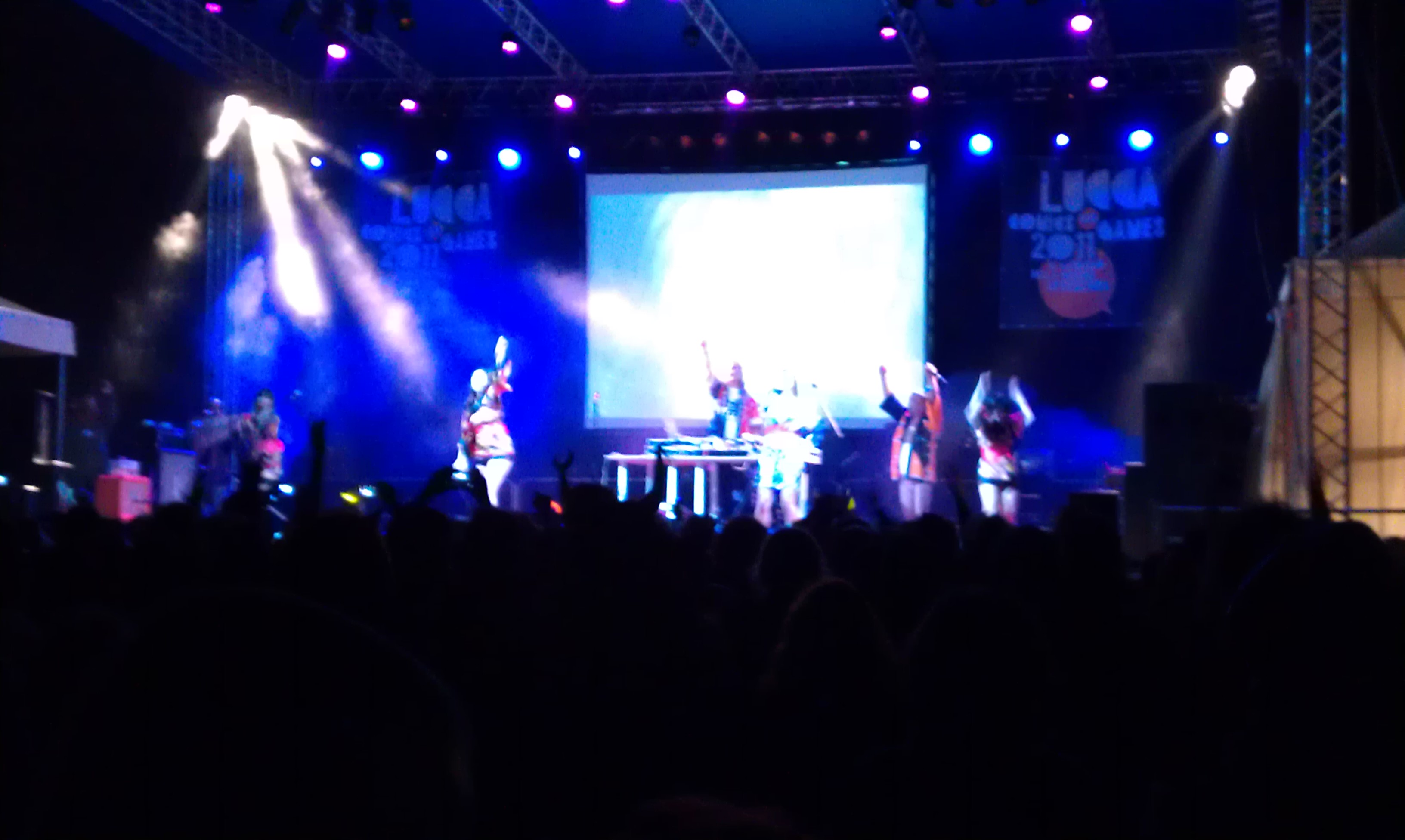 Tuttavia, ciò che davvero contraddistingue il Lucca Comics in questo senso è la presenza, sin dalla prima edizione, di un enorme palco per le esibizioni posto sulle mura della città Toscana: originariamente dedicato alle sfilate di Cospaly ed esibizioni “speciali” relative ai giochi di ruolo o cose simili, quest’anno (ma ormai già da un bel po’) ha visto avvicendarsi sulle sue assi non solo fanatici del “costume-player”, ma anche, e soprattuto, band di ogni genere che hanno suonato, per 5 giorni e per circa 10 ore al giorno (con concerti che sono terminati anche ben oltre le 23.00 (con buona pace degli abitanti del circondario di Piazzale Verdi!) un unico e solo genere: quello delle sigle degli anime!