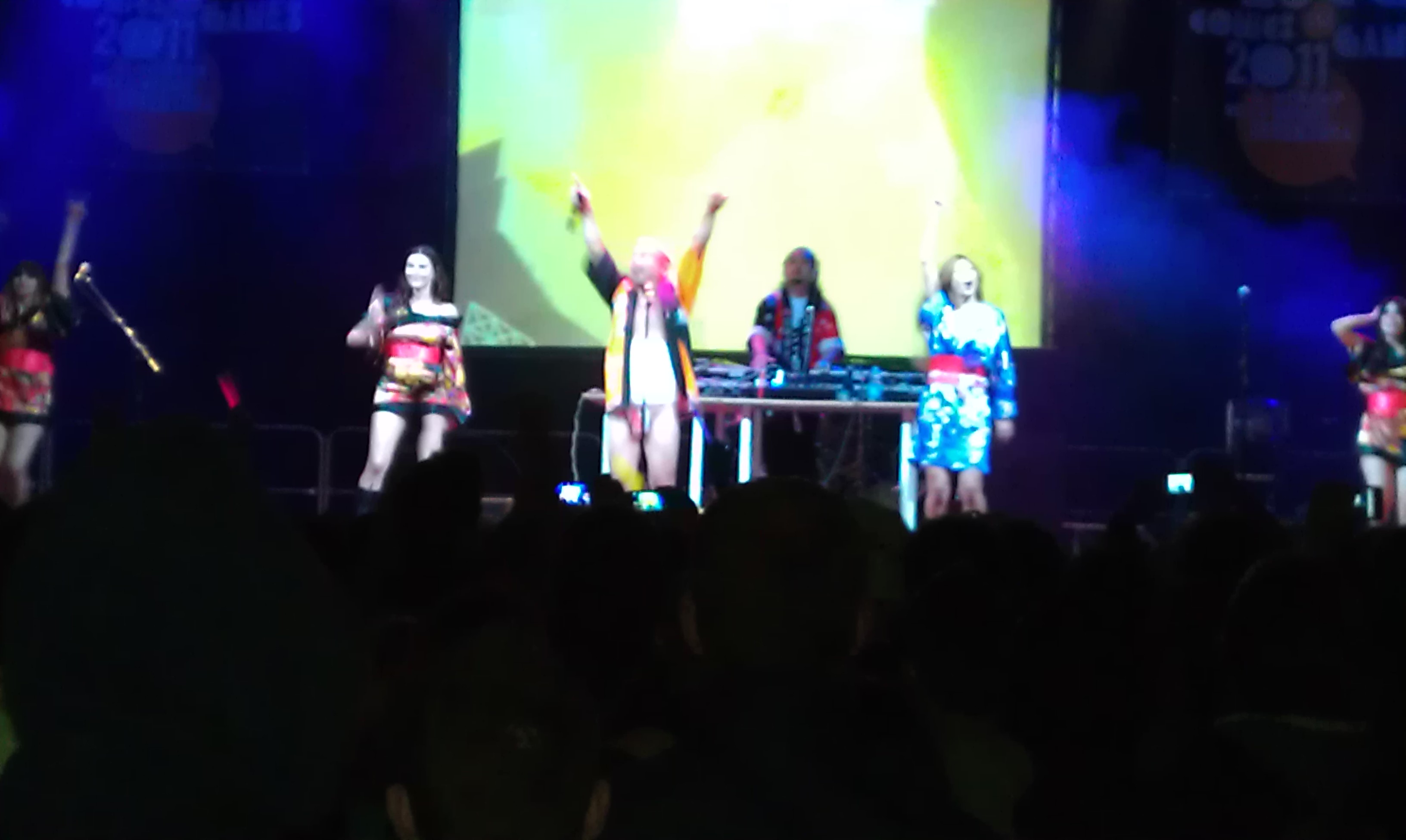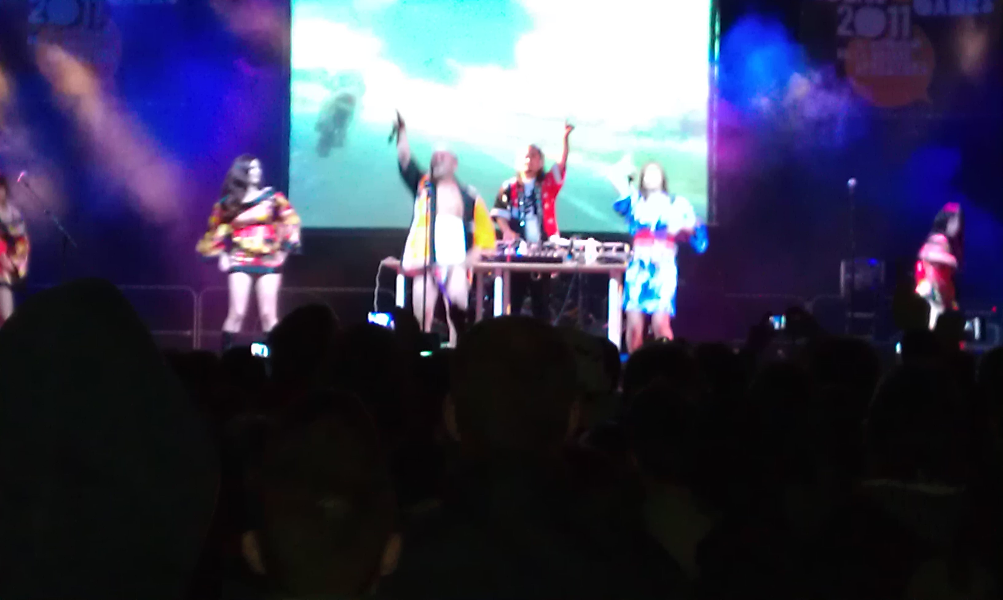 Ma visto che, come dicevo nel secondo articolo, le immagini valgono più di mille parole e, trattandosi di concerti, un video rende meglio l’idea di quello che può essere accaduto, eccovi come assaggio una breve clip (appena 10′) del concerto dei “Japanation“, gruppo “techno” che portava, in forma “semi-remixata” le sigle originali giapponesi di anime famosi (passati e presenti) accompagnati dalle immagini video delle sigle stesse su un enorme schermo e dalla danza sfrenata di un gruppo di “geishe” niente male e della versione giapponese del buon Tafazzi creato dal gruppo comico Aldo Giovanni & Giacomo.