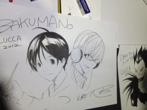 Salve a tutti, come precedentemente anticipato, ecco il mio secondo report riguardo agli eventi ai quali ho partecipato in questo Lucca Comics&Games 2012… e dal titolo potete rapidamente immaginare di cosa vi parlerò in queste poche e modeste righe. Che si può dire di Takeshi Obata oltre a quello che è stato detto fin’ora, mi sono chiesto, e soprattutto come dirlo: ho voluto evitare uno sterile resoconto delle domande e delle risposte date nei vari incontri in quei giorni, presentandovi quest’esposizione più prossima al mio stile, non privo delle mie opinioni personali. Ed è probabile che molti non saranno d’accordo con alcune delle cose che dirò.