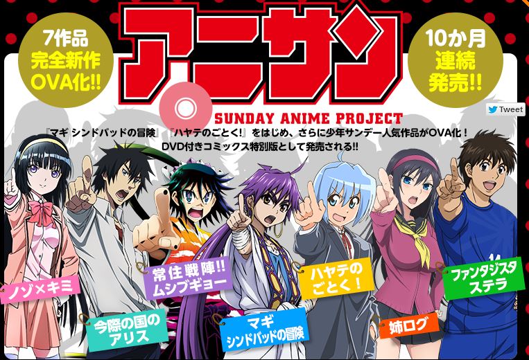 Venerdì di questa settimana, il sito web Web Sunday di proprietà della Shogakukan ha cominciato a diffondere in streaming un video promozionale della durata di 30 secondi per l’OAV (original anime video) tratto dal manga Magi: Sinbad no Bouken (Magi: le avventure di Sinbad) spin-off dell’originale manga Magi di Shinobu Ohtaka.