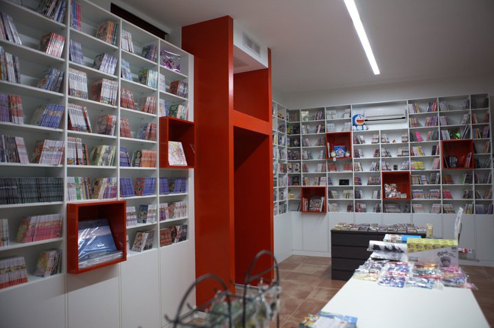 La sezione fumetteria è ben fornita: manga, artbook, action figure, DVD, CD di OST e oggettistica varia sono riposti ordinatamente su alti scaffali … lì in attesa di esser presi. 😆