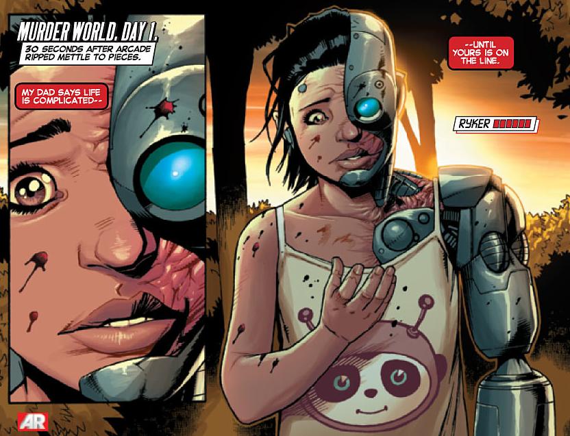 Innanzitutto, il cattivo che ha organizzato il tutto è una vecchia conoscenza: il supercriminale Arcade, un personaggio di serie B (affrontato da svariati supereroi) che era solito organizzare vere e proprie trappole mortali che chiamava Mondo Assassino. Il personaggio di Arcade, dopo le sue prime apparizioni, era stato trattato in maniera quasi comica, e qui trova in un qualche modo la sua rivalsa, creando un Mondo Assassino dove le trappole mortali e le vittime coincidono.