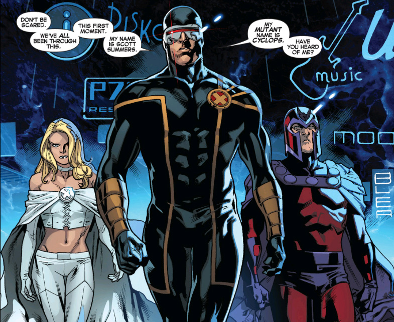 Si, perchè i Figli dell’Atomo vivono un periodo alquanto strano, anche per i loro standard. Dopo AvX, infatti, i mutanti che sono appena usciti dall’orlo dell’estinzione e stanno aumentando ogni giorno, sono divisi in due schieramenti che in un qualche modo ricalcano la visione dei due storici rivali Xavier e Magneto. Ma a fare le veci del secondo(che prende addirittura ordini da lui) abbiamo nientemeno che il migliore allievo del Professor X, Ciclope; e come capo e preside della scuola per ‘giovani dotati’ c’è…