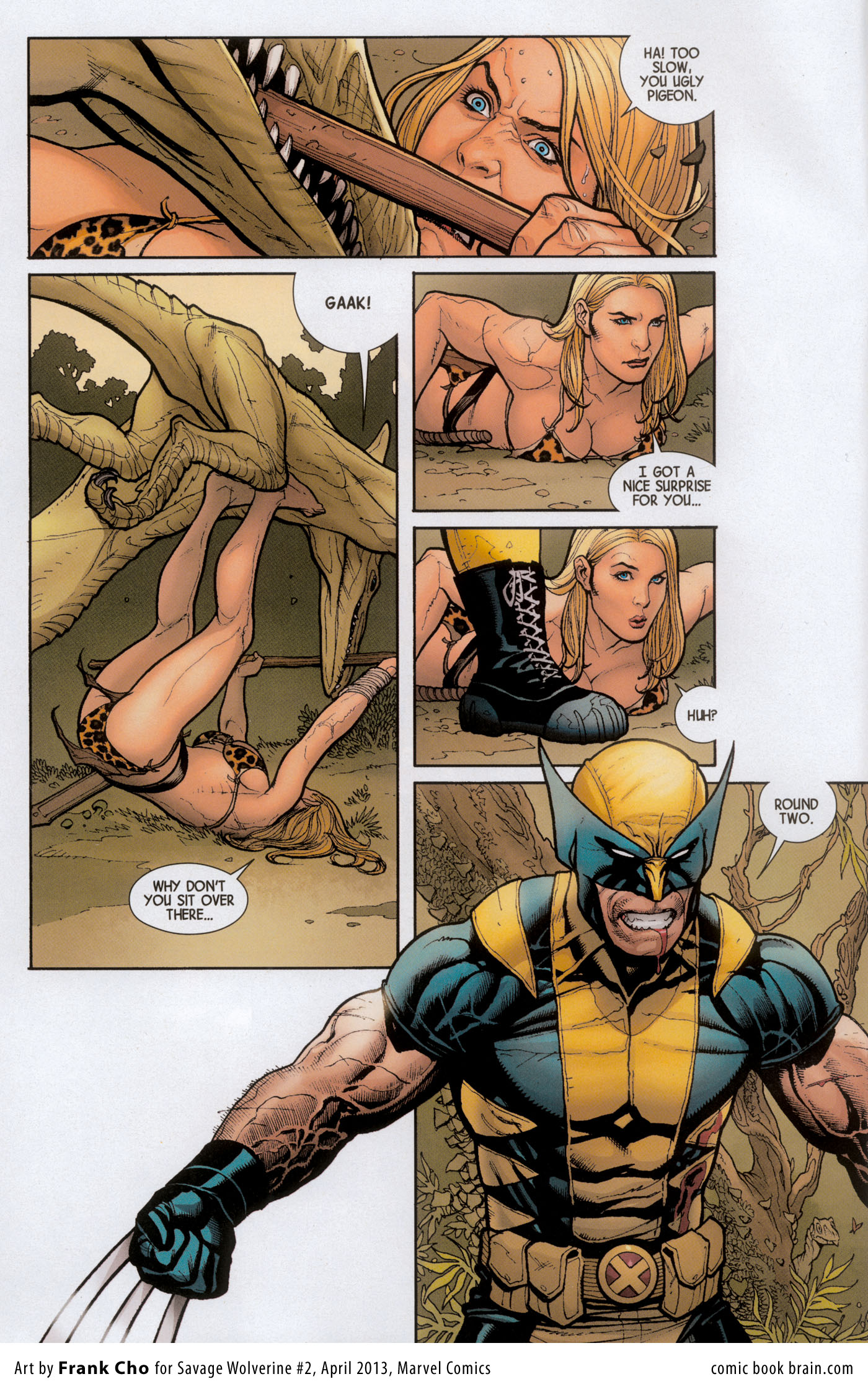 E anche questa testata non fa eccezione: si chiama ‘Savage’, è ambientata nella Terra Selvaggia (un territorio dell’Antartide rimasto fermo alla preistoria ispirato al ‘Mondo Nuovo’ di Huxley), la disegna Frank Cho, quindi vuol dire due cose, sostanzialmente: