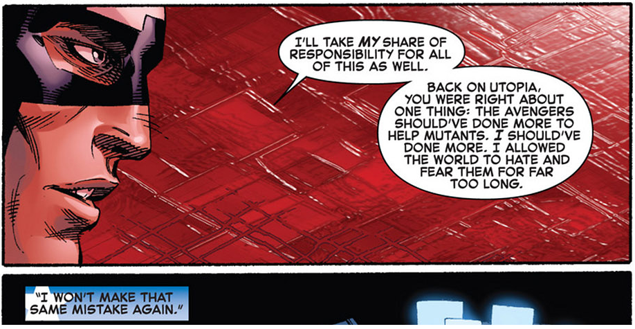 Cap prende molto seriamente questa critica, e risponde a modo suo, cercando di mettere su una squadra che annoveri sia Vendicatori, sia X-Men. E nella più pura tradizione questa squadra si ‘assembla’ (o meglio, si assemblerà) in maniera fortuita, in seguito all’intervento di un ‘cattivo’ che in un qualche modo unisce alcune problematiche di entrambe le ‘famiglie'(sia Vendicatori, sia mutanti).