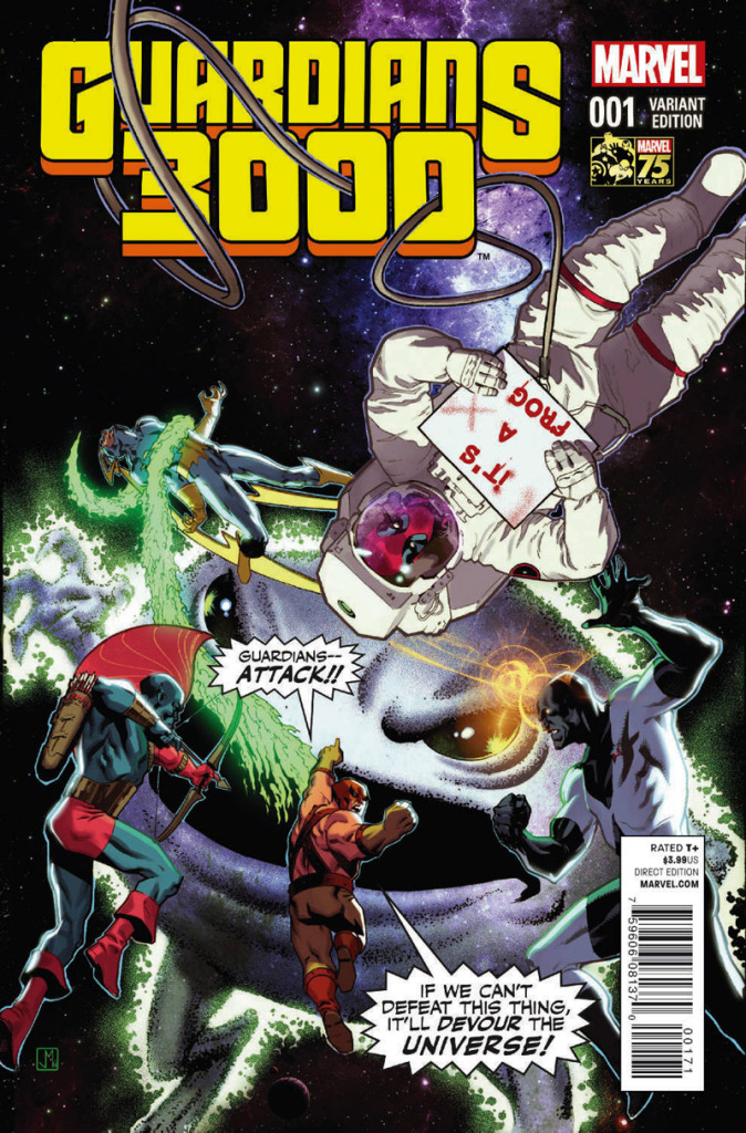 Dato il settantacinquesimo anniversario della Casa delle Idee, sono state rilasciate anche delle variant che riprendono delle copertine oramai storiche, ridisegnate con una piccola aggiunta: il photobombing del solito Deadpool, personaggio che i fan adorano. E la Marvel questo lo sa, a giudicare dall’esposizione che il personaggio sta avendo. Tengo per me i commenti (magari ci scrivo un Due Parole su…) ed eccovi le variant: