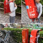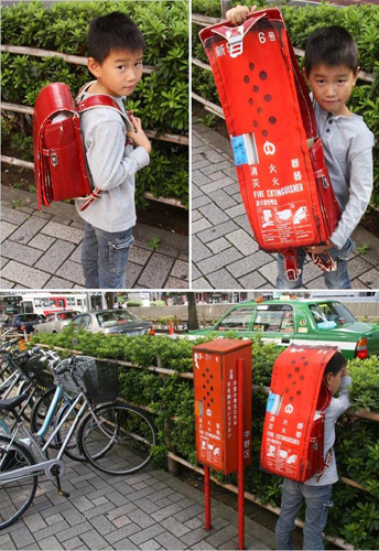 L’idea della mimetizzazione però risponde ad una reale esigenza che in Giappone non viene presa sottogamba se si pensa che sono disponibili anche borse che sembrano tombini, zainetti scolastici capaci di trasformarsi in una cassetta delle lettere, per non parlare delle divise scolastiche in materiale a prova di arma da taglio ed i manuali su come vestire i propri figli per tenere lontano i bulli.