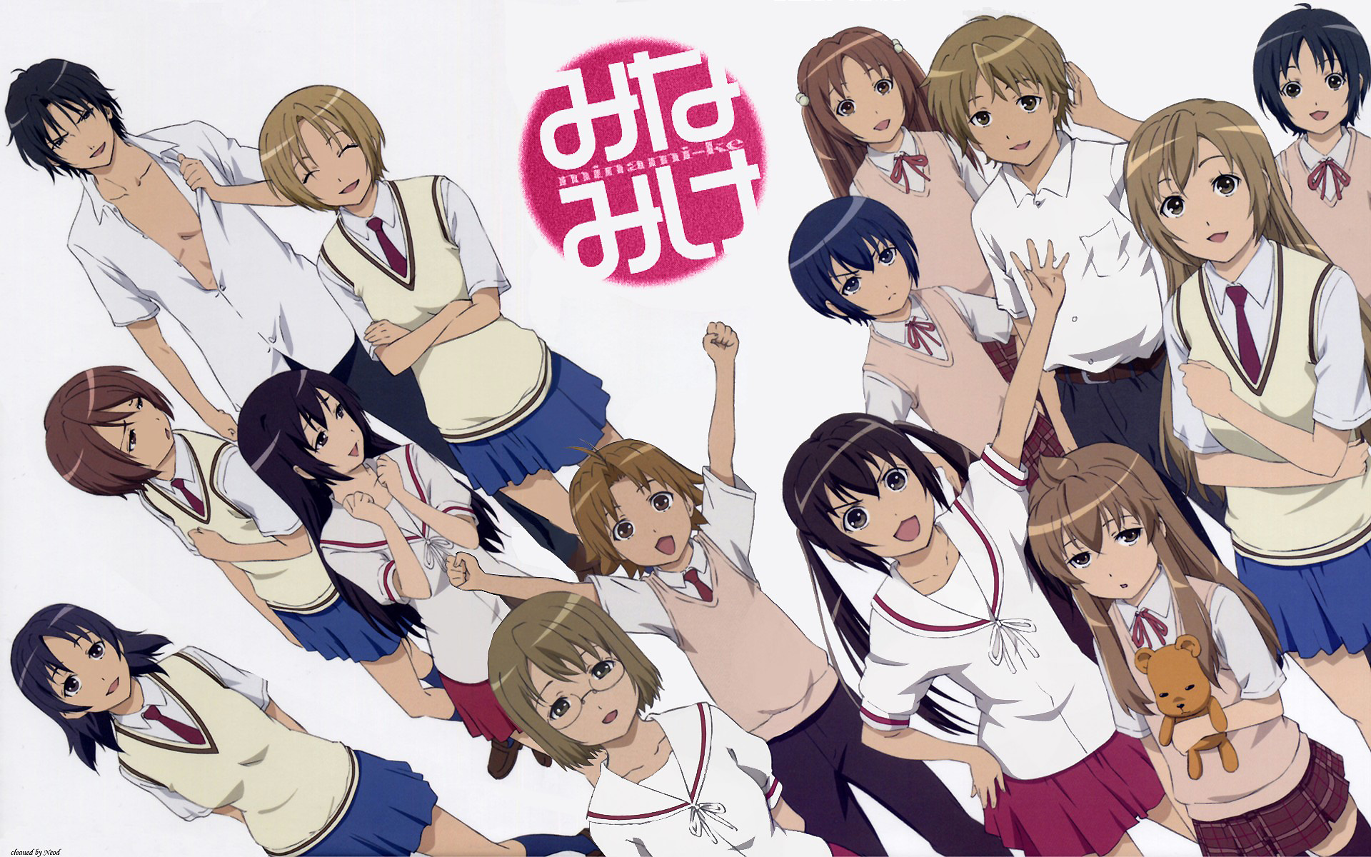Dimenticatevi di qualunque possibile coerenza cronologica: in quattro serie i personaggi non sono invecchiati di un giorno, sebbene ci siano stati quattro natali, quattro vacanze estive… in pieno stile umoristico e autoconclusivo i registi hanno rosicchiato fino all’osso gli appuntamenti e le feste tipiche della cultura giapponese mostrandoli sempre con la variazione di qualche elemento. Col tempo, inoltre, si conoscono meglio i personaggi, soprattutto attraverso piccoli dettagli, trovando i propri preferiti e quelli che non si sopportano. Tra i miei preferiti spiccano sicuramente i compagni di classe di Chiaki, tra cui Makoto e Uchida: il primo si invaghisce di Haruka e viene costretto da Kana a presentarsi a casa loro vestito da ragazza con il falso nome di Mako-chan, e riuscirà sempre a farla franca con l’aiuto di un paio di personaggi che conoscono la sua vera identità; la seconda è una bimba spensierata, sbadata e pigra che si ritrova spesso complice delle stravaganti iniziative di Kana. Insopportabili invece la maggior parte dei personaggi delle scuole superiori, tra cui cito Hosaka che con la sua unica e ripetitiva gag a volte guasta gli episodi. Ciò non deve sorprendere, se pensiamo al pubblico ideale di questa commedia multistrato: è ovvio che ragazzini delle medie e delle elementari percepiscano gli studenti delle superiori come “strani“. Fortunatamente alcuni tormentoni durano poco, e non appesantiscono quindi la visione, ne è un chiaro esempio l’etichetta di delinquente affibbiata durante la prima serie a Fujioka, compagno di classe di Kana innamorato di lei, la cui dichiarazione viene magistralmente fraintesa… nelle serie successive questo fraintendimento non viene comunque chiarito, ma almeno il ragazzo non viene considerato da tutti come un delinquente, e il suo rapporto con Kana è a tratti quello di una normale amicizia.