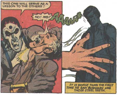 Sorpreso di spalle proprio dal dottore, Bushman rischia la morte ma Marc, per un motivo che nemmeno lui riesce a spiegare, avvisa Bushman che strazia il dottor Alraune con la sua dentatura di metallo.