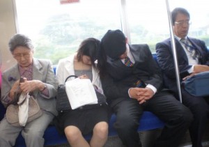 I salary man (uomo d’affari) giapponesi, dormono circa 6 ore a notte, e recuperano il sonno perso durante il tragitto di andata e di ritorno dal lavoro.
