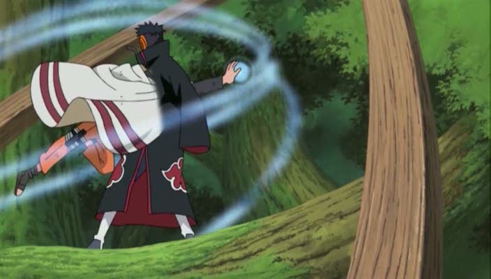 Intanto i ninja di Konoha sono ancora alle prese con Tobi. Questi sembra evitare tutti gli attacchi subiti! Ad un ennesimo attacco, questa volta di Yamato, Tobi sparisce!
