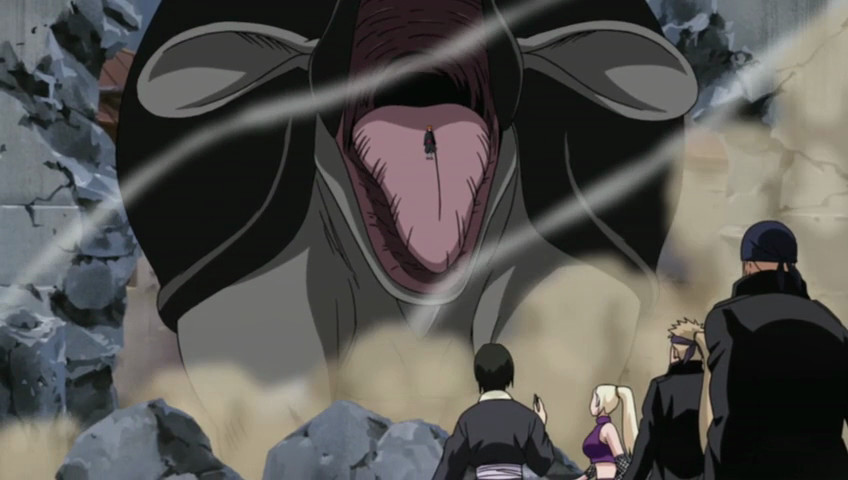 Tre Anbu e Ibiki affrontano rispettivamente un’evocazione e Pain, ma invano. Sembra che Pain non provi alcun dolore!