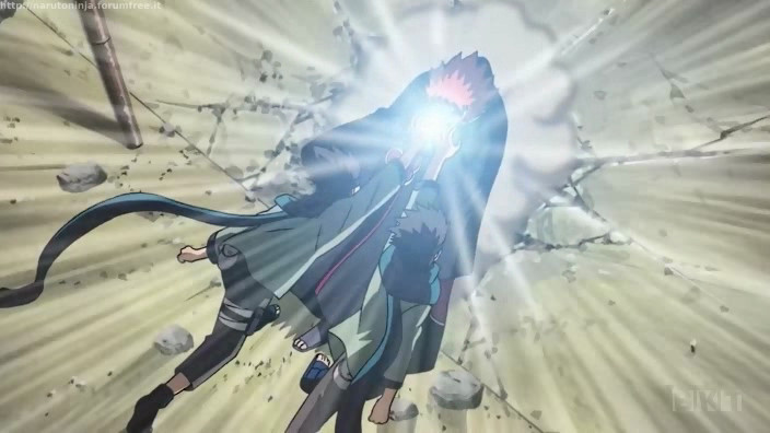 E invece no! Era una copia, e ora il giovane ninja attacca Pain…con un Rasengan!!!