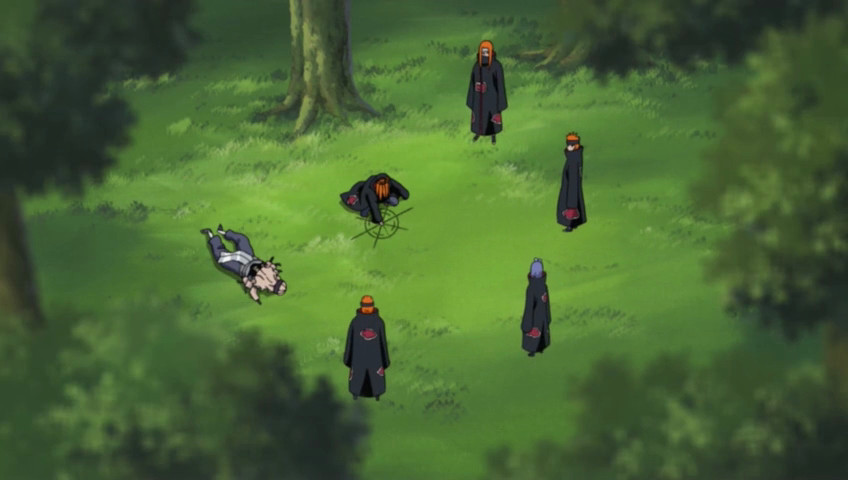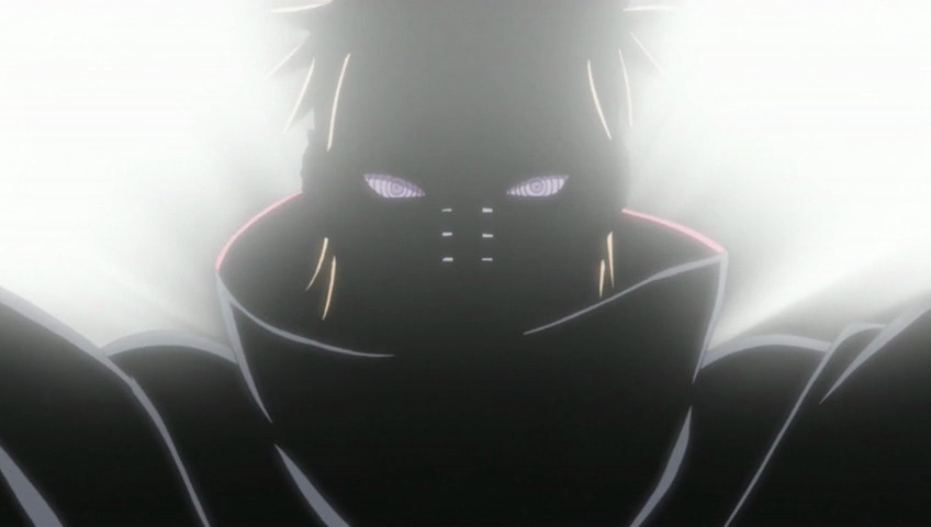 L’ultimo Pain rimasto a Konoha ora sorvola sul villaggio stesso. Tsunade, preoccupata, cerca di fermarlo, ma…