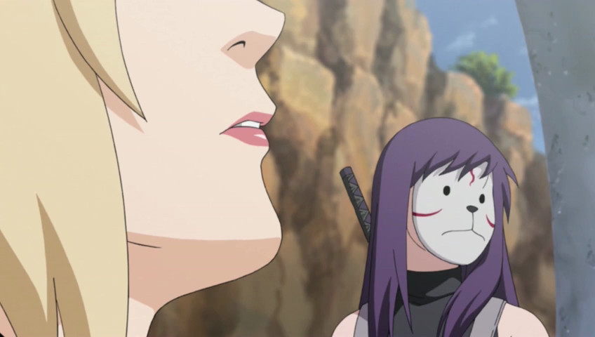 Shizune, Ino e suo padre, analizzando i dati a loro disposizione, ipotizzano che dietro i Pain ci sia qualcun altro e che questi corpi siano manovrati con un jutsu simile a quello del clan Yamanaka…ma si lasciano sorprendere da un attacco improvviso del Pain Regno Umano. Questi scopre l’ubicazione di Naruto leggendo nella mente di Shizune e…l’ammazza, strappandogli via l’anima!