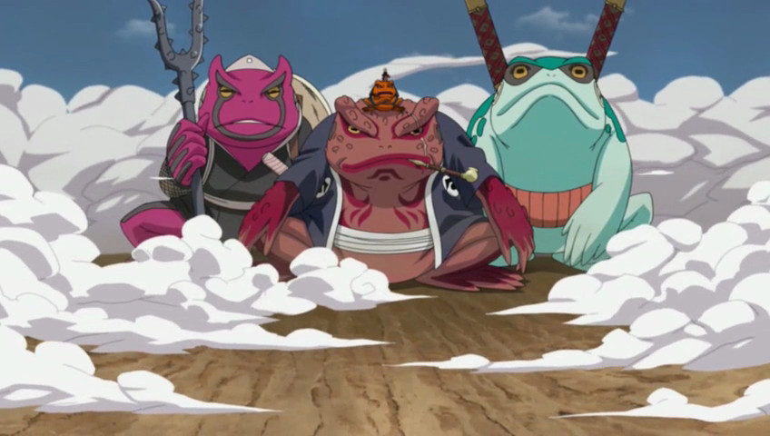 Pain ora sa dov’è Naruto! Infatti cessa l’attacco a Konoha! Tutti i Pain vengono evocati all’infuori del villaggio…tranne Regno Divino! Nel mentre, al Monte Myoboku sale la preoccupazione! Si è scoperto che il rospo messagero che era a Konoha è morto: immediatamente ne viene inviato un altro da Shima (la rospa-moglie di Fukasaku) per avvertirla di tenersi pronta a richiamare Naruto, in caso di necessità!